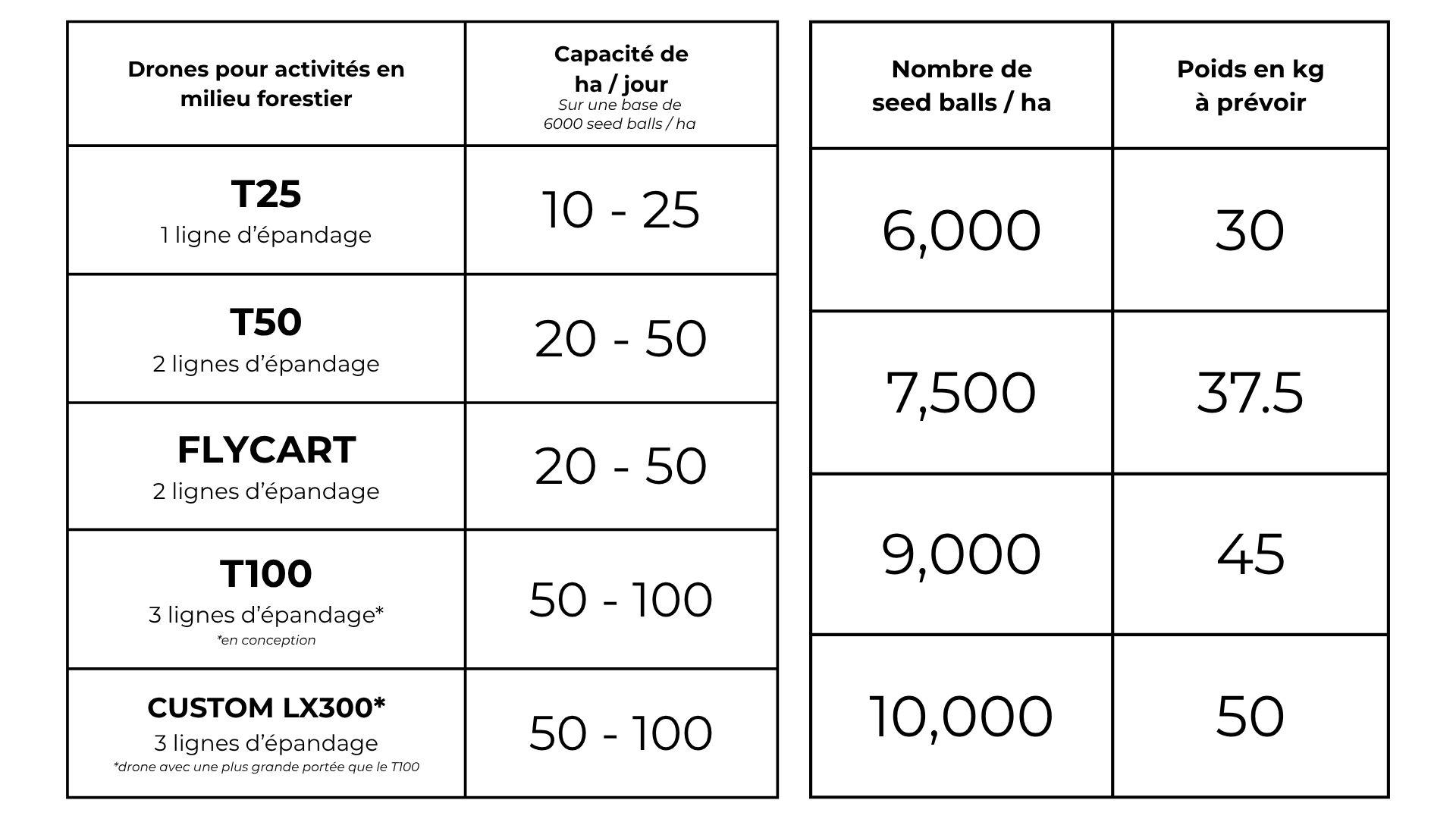 Épandeurs automatisés alliant la technologie DJI Agras à des solutions sur mesure, conçus pour répondre aux exigences de chaque projet de reboisement et s’adapter aux conditions de terrain les plus variées.
